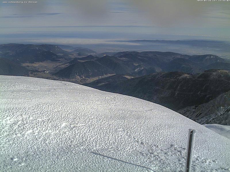 The cloud hat still persists. On days like this you better stay down in the plain. Today (16.1.2014) the cloud has dissolved, as can be seen on www.Schneeberg.tv: