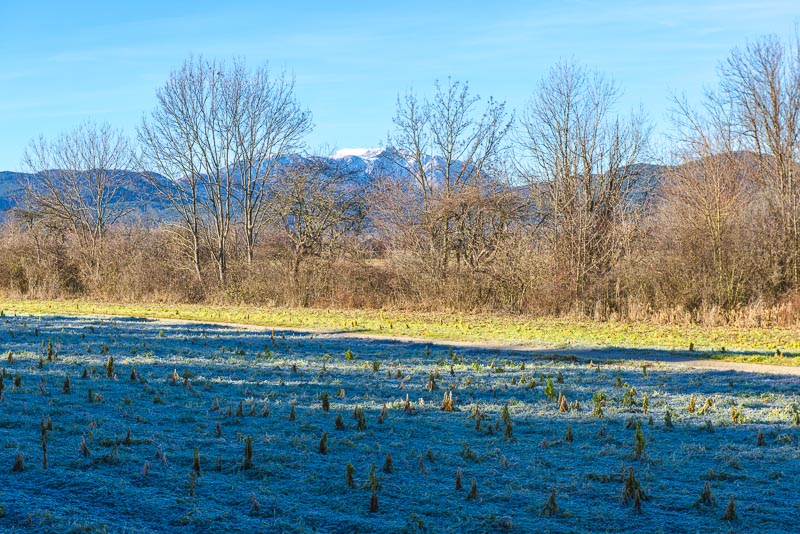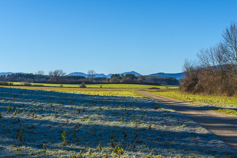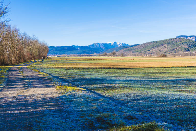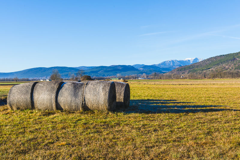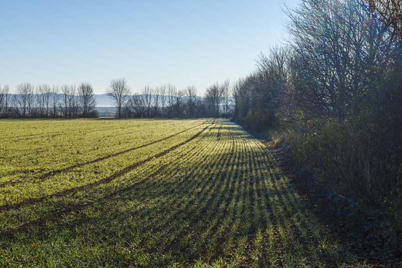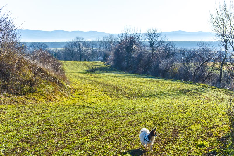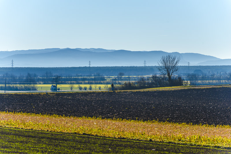 A morning walk of nearly three hours with Lucy unterwegs - starting from Winzendorf to the fields and the hill near Saubersdorf, further on to the outskirts of St. Egyden and on a more western route back, nearer to the mountains. Glorious sunshine, but a bit crisp, tis morning´s hoarfrost persisting in shady areas. The evening´s weather report tells about 16 °C on top of Hohe Wand this afternoon!