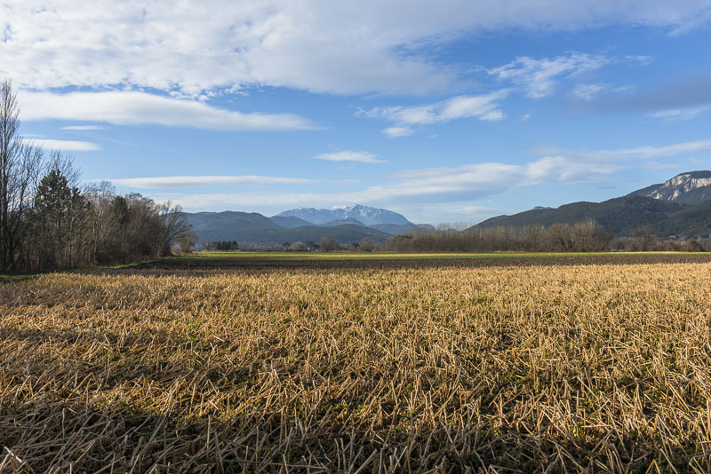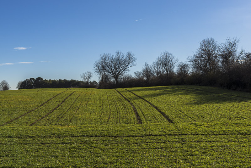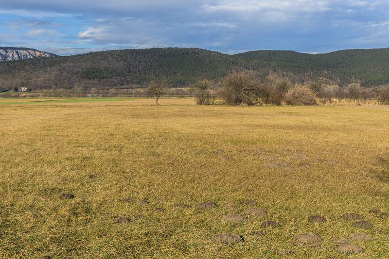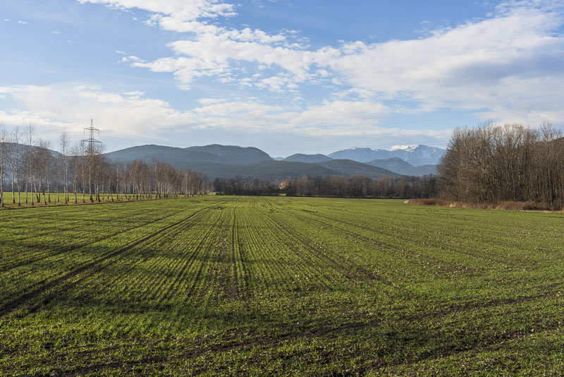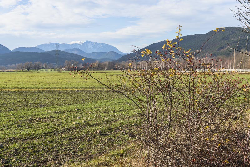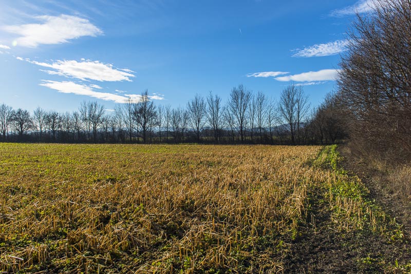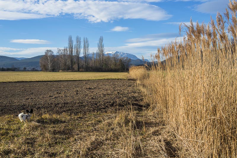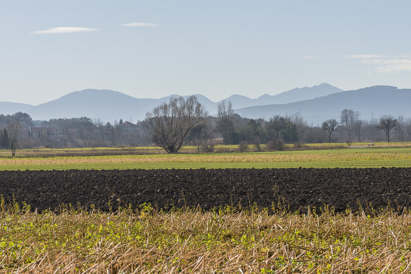 Ich breche am späteren Vormittag mit Lucy auf zu einer Wanderung über Wiesen und Felder. In diesem verrückten Jahr ist es heute, zwei Tage vor Weihnachten, so warm, dass mir im Anorak zu heiß wird. Wir wandern von Winzendorf bis Strelzhof, zurück durch den Wald und über den Blossen Berg.