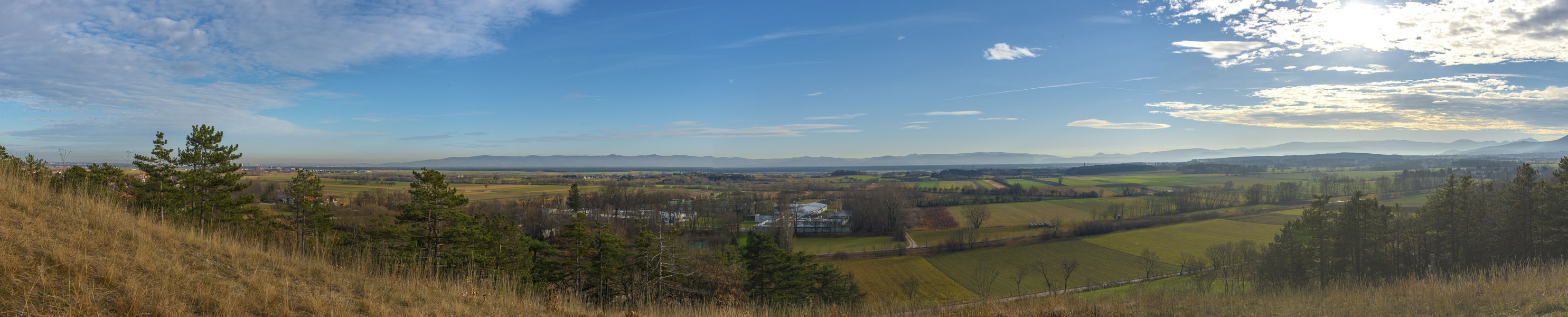 Panorama vom Blossen Berg - Blick auf das Steinfeld. Im Hintergrund die Rosalia, rechts Semmering und Wechsel.