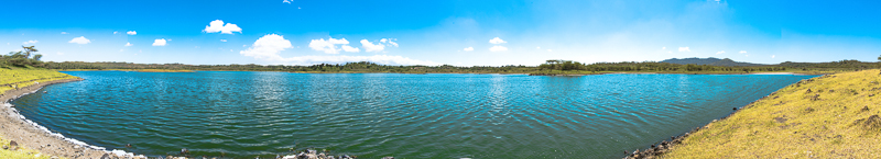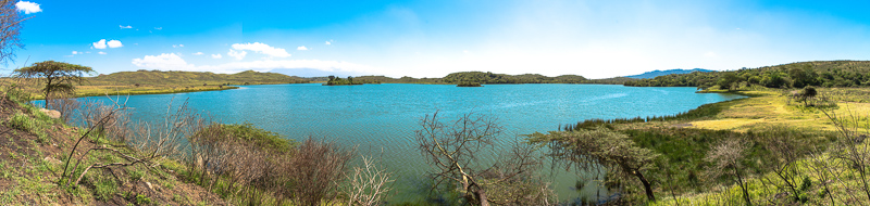 Panoramabild des kleinen Momella Sees. Hierher oder ins Bild klicken für eine größere Darstellung.