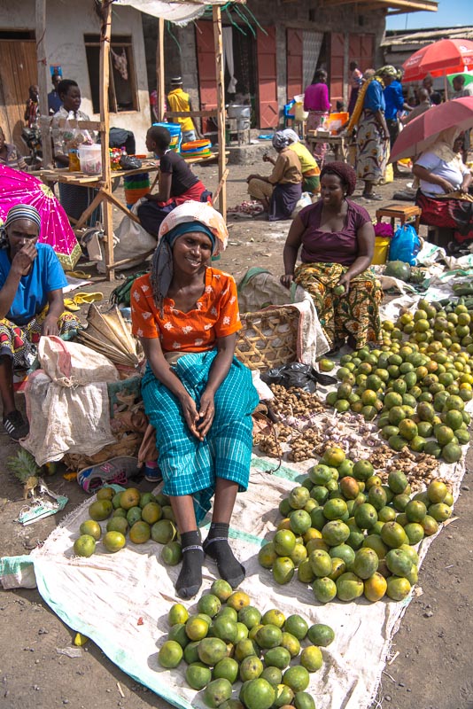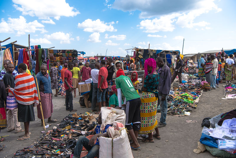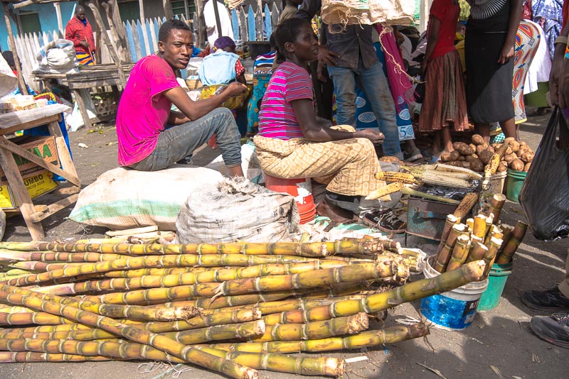 Alles mögliche wird hier angeboten, vor allem Lebensmittel. Getreide und Hülsenfrüchte liegen in Haufen auf Planen, ...
