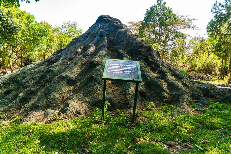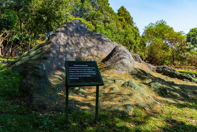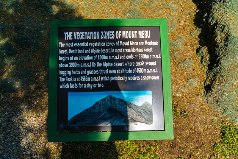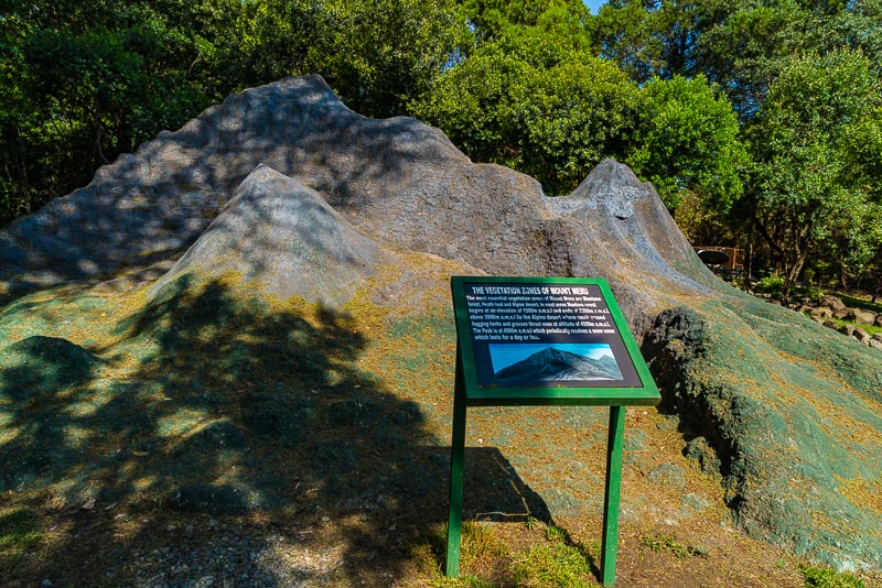 In einem kleinen Park ist hier ein Modell des Mount Meru aufgebaut, mit Tafeln zur Beschriftung.