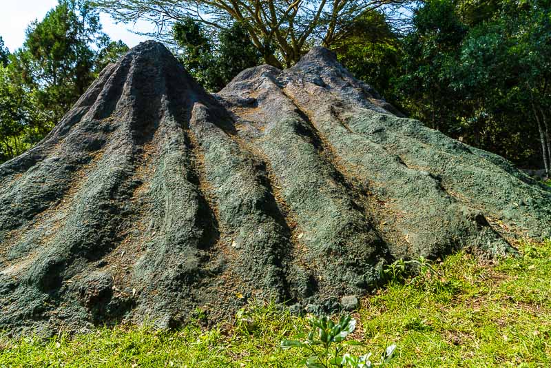 Hier steht ein riesiger Feigenbaum, der auf die gleiche Weise gewachsen ist wie der oben beschriebene. Die Feige ist längst stabil genug, um selber zu stehen. Der Wirtsbaum dürfte sehr dick gewesen sein, und wurde später entfernt ...
