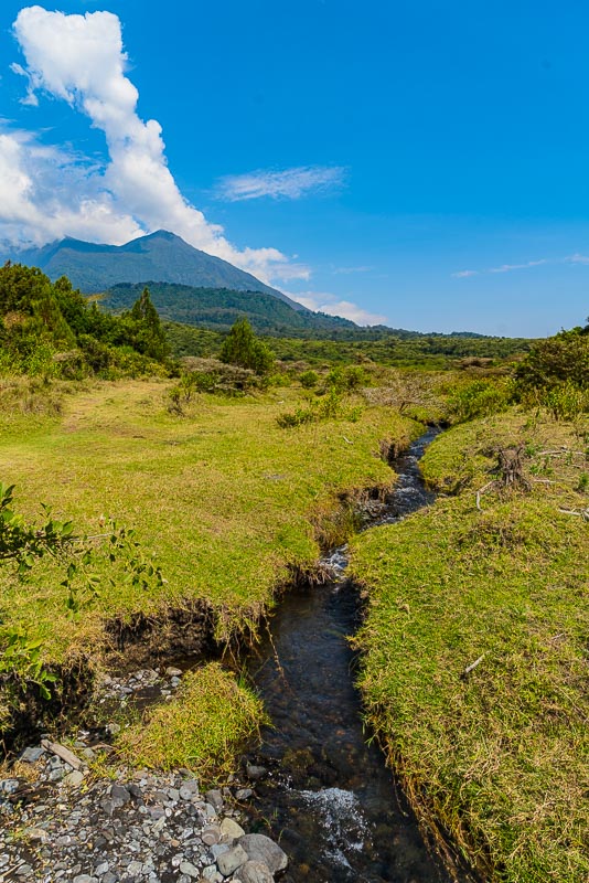 geht es diesen Seitenbach entlang über die große Wiese am Fuß des Mount Meru.