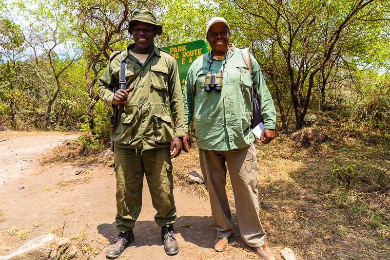 Meine zwei Begleiter - der Ranger (links) und Charles, mein Fahrer und Guide.
