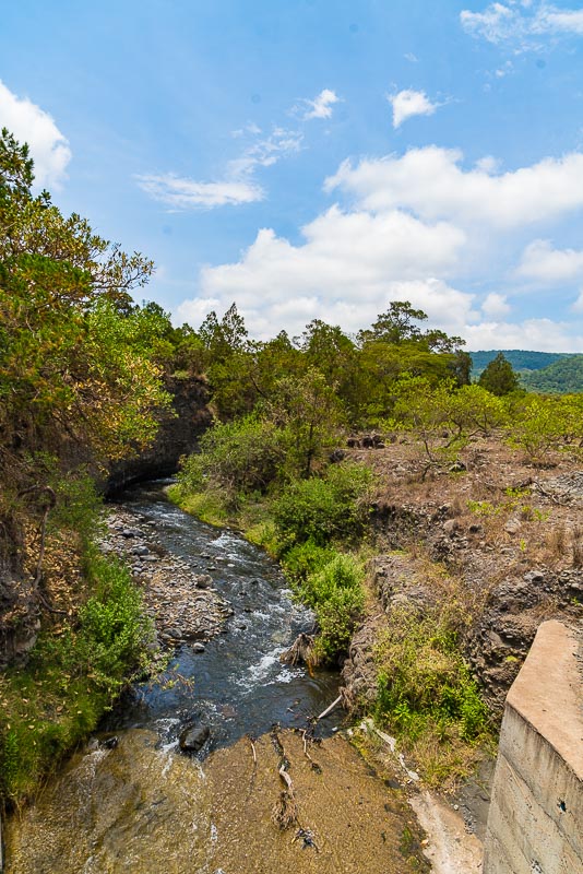 Es geht jetzt hinauf in den Regenwald, über eine betonierte Brücke über den Ngare Nanjuki River.
