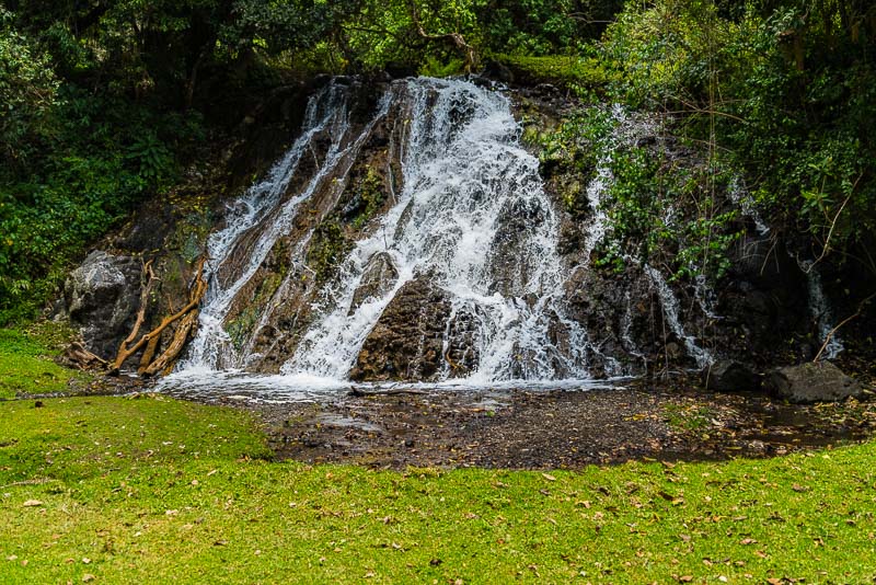 Unser Weg führt uns zu einem kleinen Wasserfall, über den der oben erwähnte Bach stürzt, eher er über die Wiese fließt.