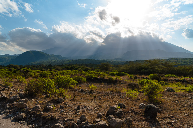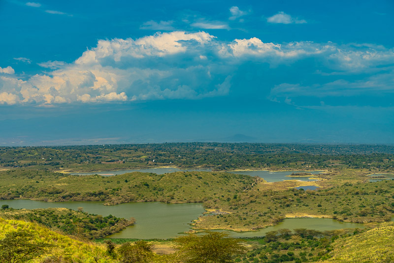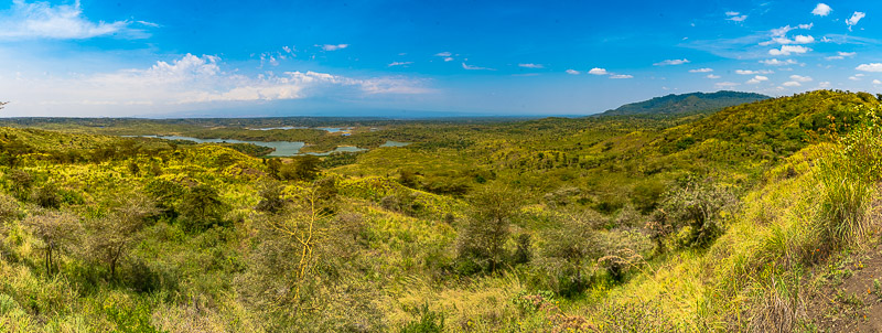 Schöner Blick zu den Momella - Seen von hier, der Kilimandscharo ist um diese Tageszeit immer hinter Wolken verborgen.