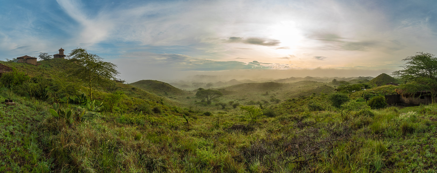 Panorama- Ansicht von der Terrasse des Restaurants der Original Maasai Lodge.