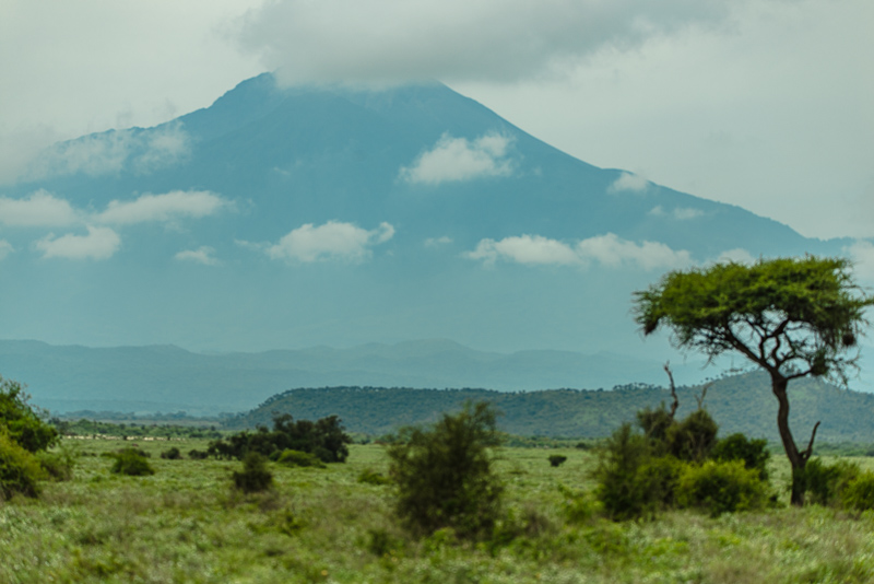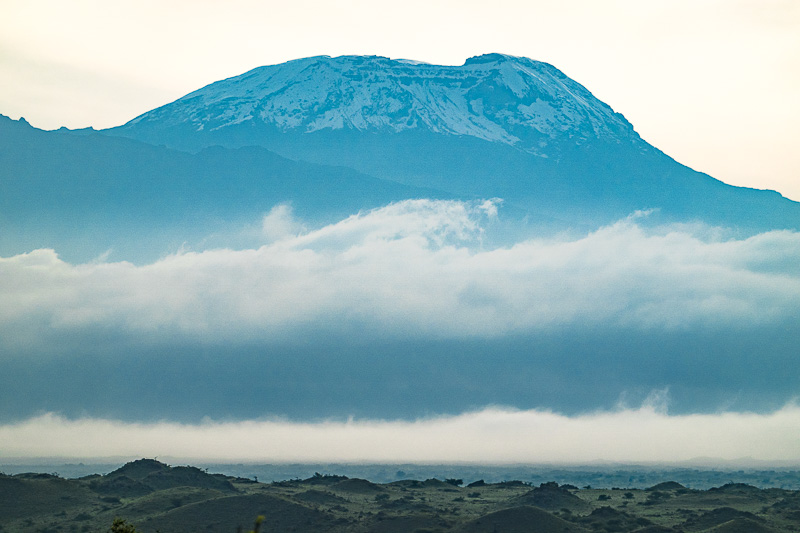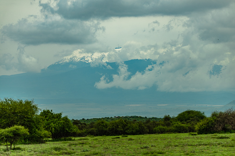 Die Landschaft ist hier ein wenig höher als der nördliche Fuß des Kilimandscharo, den man jetzt zwischen den Wolken ein wenig erkennen kann.