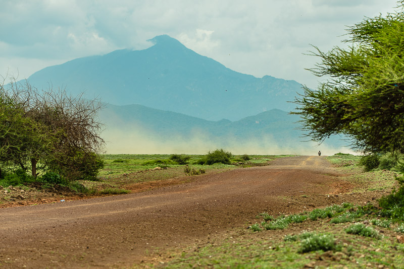 Diese Straße führt nach Longido Town und zum Mount Longido, hier im Hintergrund. LKW´s wirbeln hier ganz gewaltig Staub auf.
