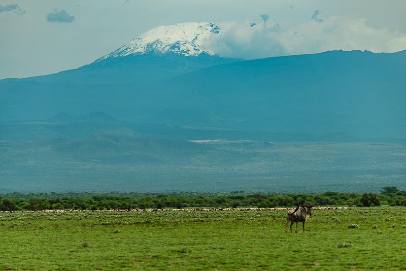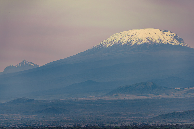 Da wir hier nur wenige Meter von der Grenze zu Kenia entfernt sind, wird im Kilimandscharo - Massiv links hinter dem Kibo (5.895 m) auch der Mawenzi (5.149 m) sichtbar.