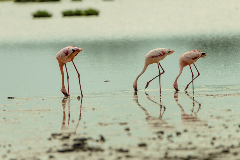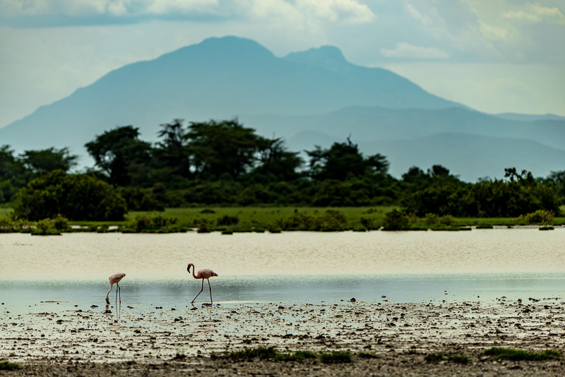 Durch den Regen in der letzten Woche hat sich hier Wasser gesammelt. Das zieht sofort Flamingo´s an.