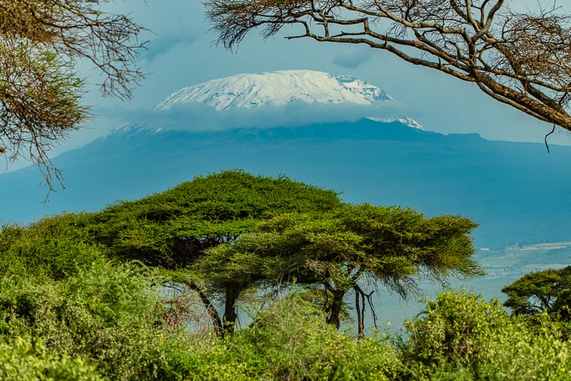 Zwischen den Akazien wird jetzt stellenweise wieder der Blick zum Kilimandscharo frei.