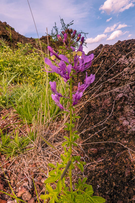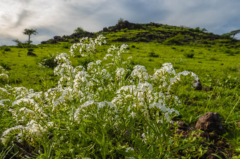 Am vulkanischen Hügel wachsen diverse Blumen ...