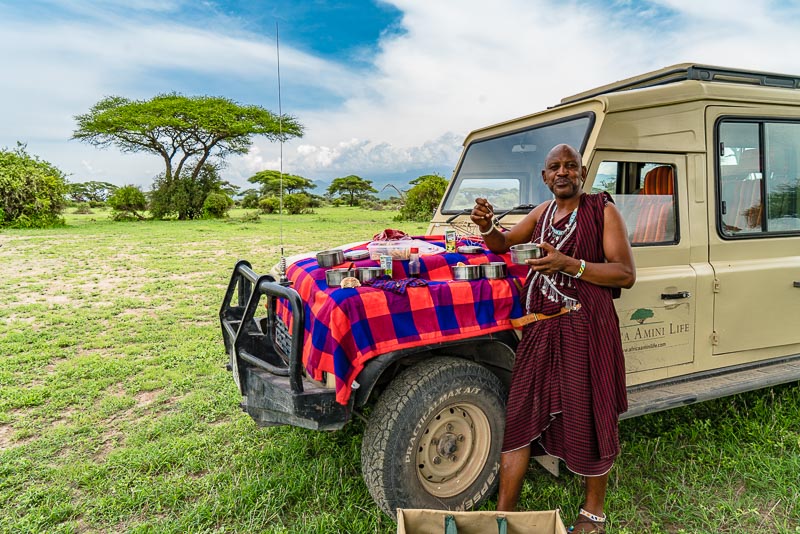 In der Gegenrichtung schaut man auf der linken Seite des Bildes nach Kenia hinein, unter den Bäumen werden gerade unsere Zelte errichtet.