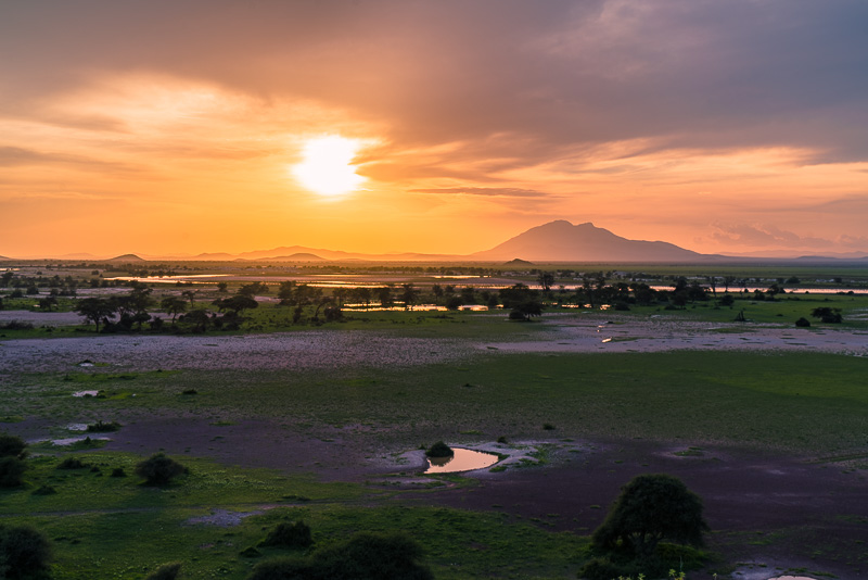 Wir warten jetzt auf den Sonnenuntergang. Blick zum Mt. Longido.