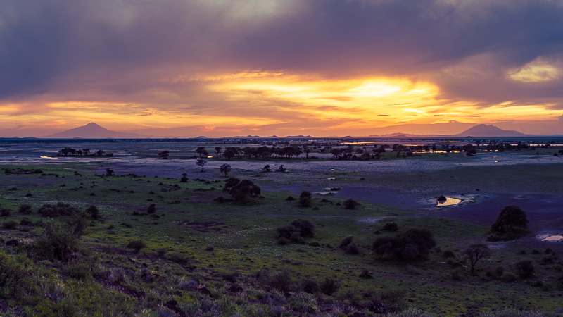 Leider zieht jetzt eine Wolkenmauer im Westen auf, sodass uns auf der anderen Seite ein Abendrot am Kilimandscharo verwehrt bleibt.