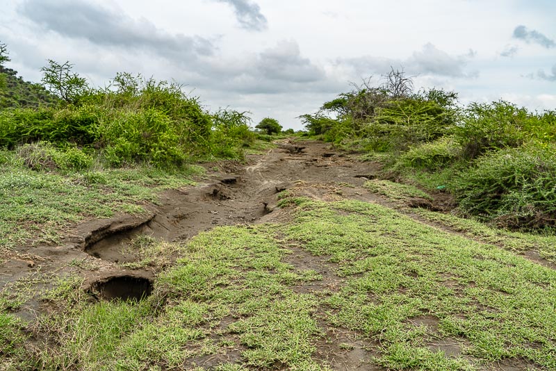 Wir fahren eine unbefestigte Piste - nach dem Regen der letzten Woche etwas ruppig. An dieser Stelle muss mein Fahrer und guide Elias aussteigen und nachschauen, wie man sie am besten passiert.