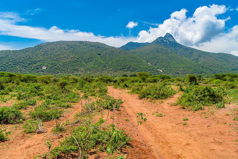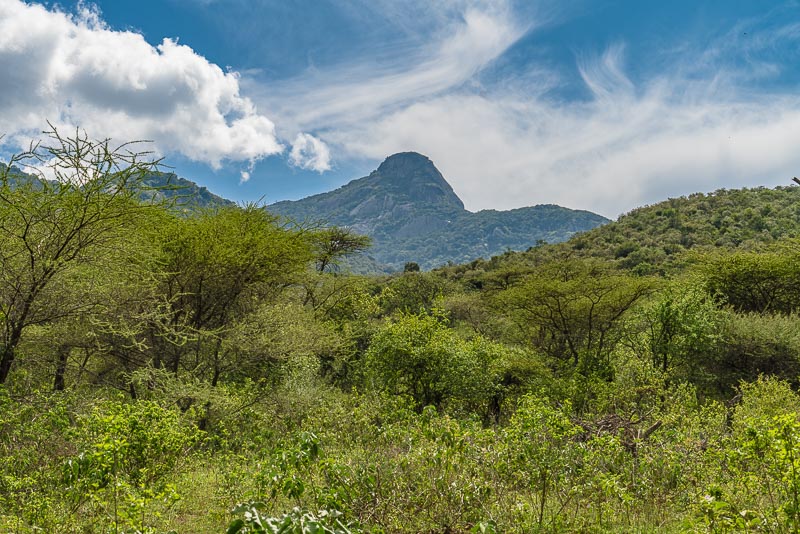 Hier erscheint der Gipfel des Longido besonders imposant. Der Longido ist, im Gegensatz zu den anderen Bergen der Umgebung, kein Vulkan, sondern ein Granitfelsen.