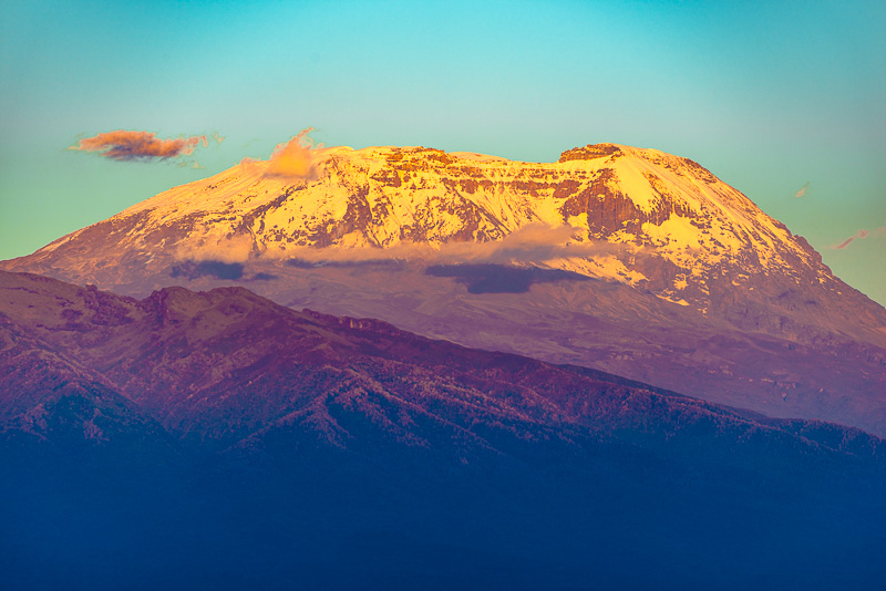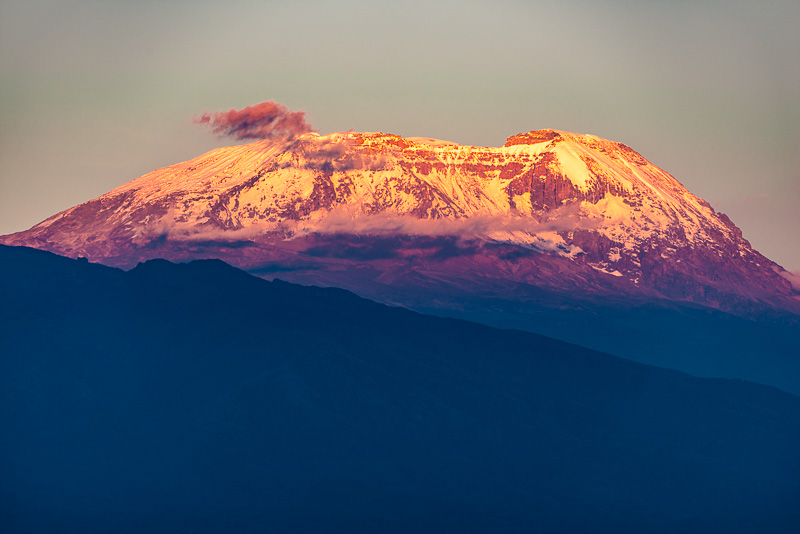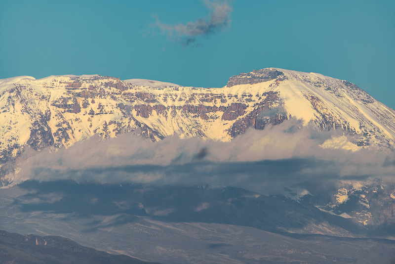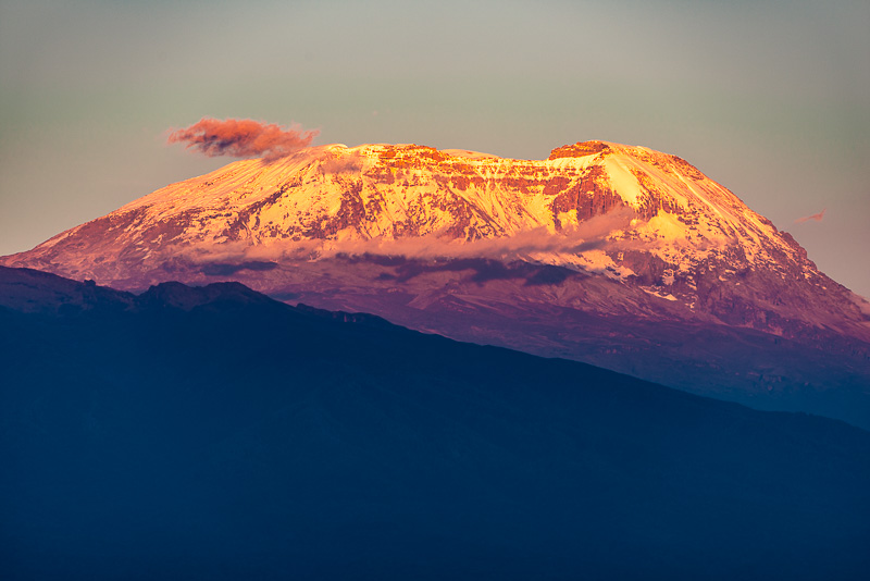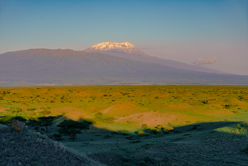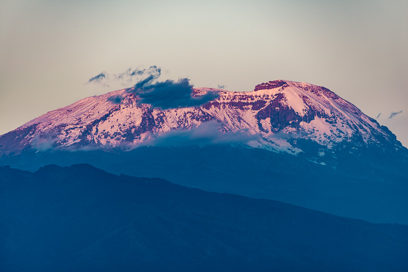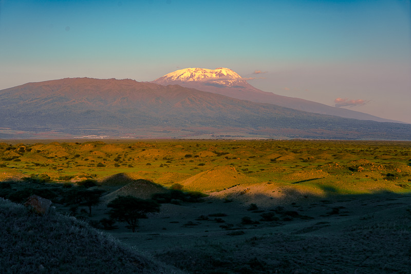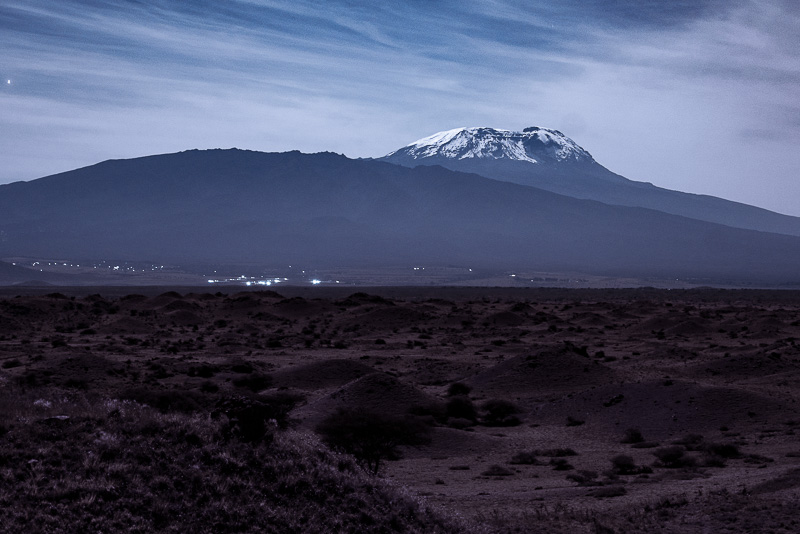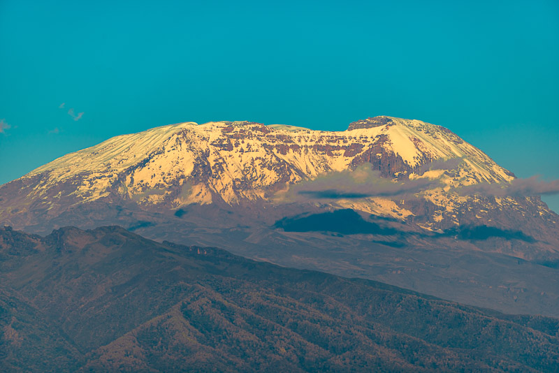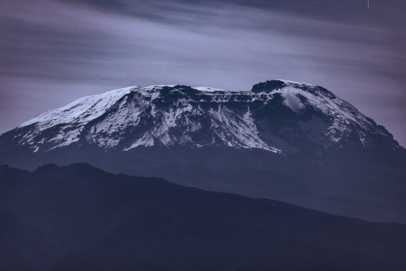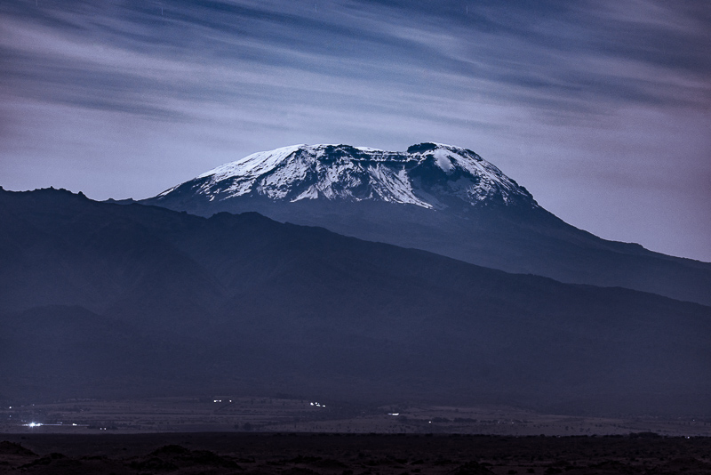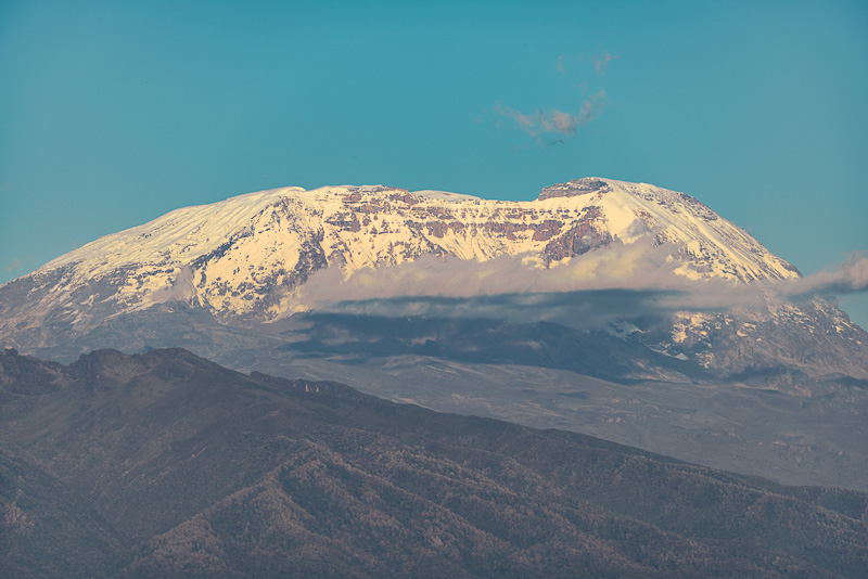 Trotz der dünnen hohen Wolken gibt es ein eindrucksvolles Bild vom Kilimandscharo.