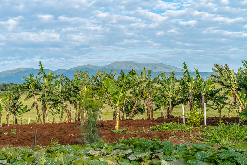 Nach dem Frühstück wandere ich noch ein wenig durch den Garten und die ausgedehnten Obst- und Gemüseplantagen.