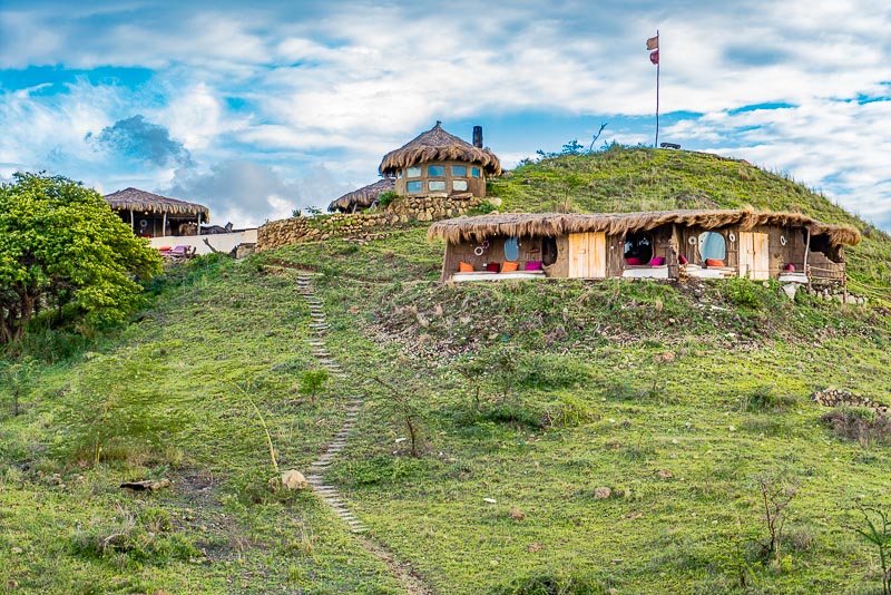Gleich gegenüber ist ein steiler, kegelförmiger Hügel, von dem aus das Bild meines Bungalows gemacht wurde.