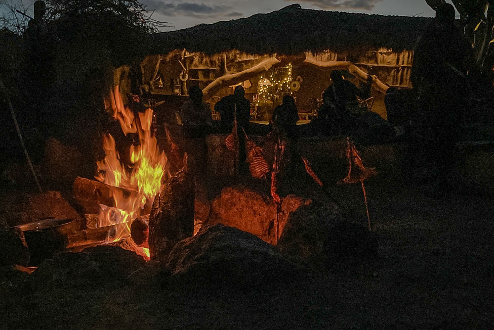 Abends gibt es in der Lodge jeden Tag ein Lagerfeuer, wo Ziege gegrillt bzw. zu Suppe verkocht wird. Dabei werden Informationen über die Maasai erzählt - die Leute nennen das hier scherzhaft "Maasai TV" (MTV!)