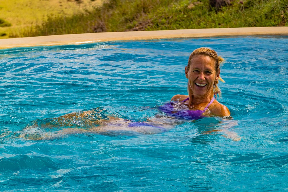 Ich treffe Cornelia am Neujahrstag beim Pool, wo sie sich erfrischt (mir persönlich ist das Wasser zu kalt).