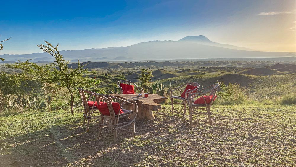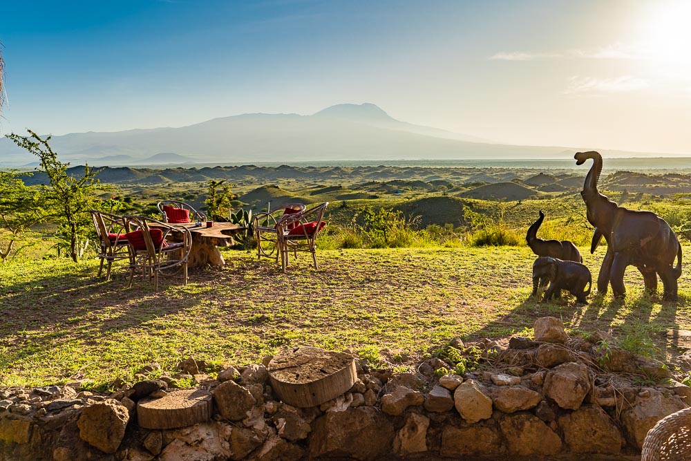 Bei der Terrasse des Restaurants hat man heute einen wunderbaren Blick zum Kilimandscharo.