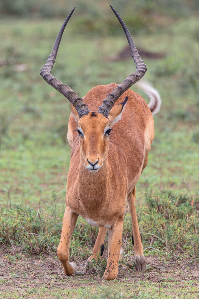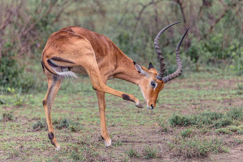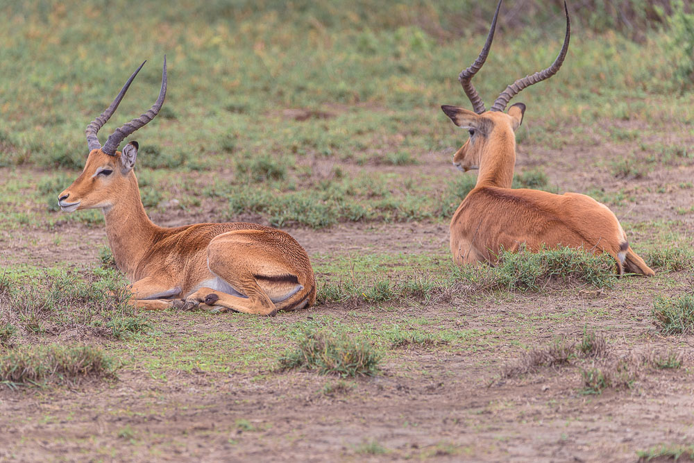 Die Reise geht los. Nach kurzer Fahrt zwischen den Bäumen einige Impala Antilopen.