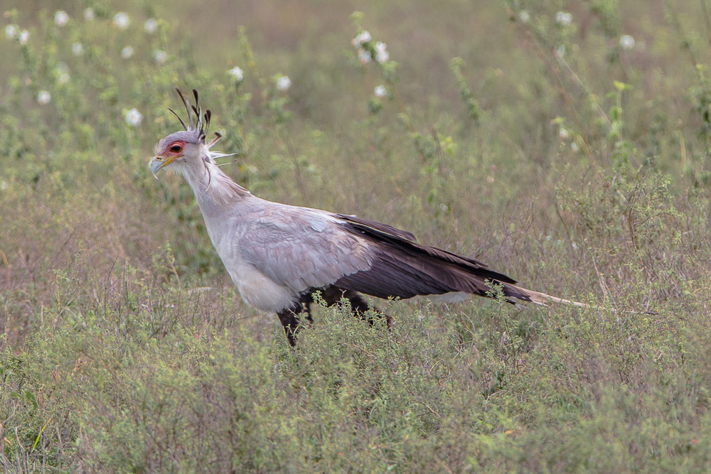 Sekretärsvogel. Den Namen hat er daher, dass seine abstehenden Kopf - Federn aussehen wie die Bleistifte hinter den Ohren des Sekretärs.