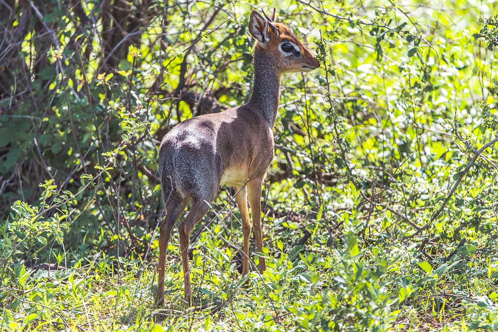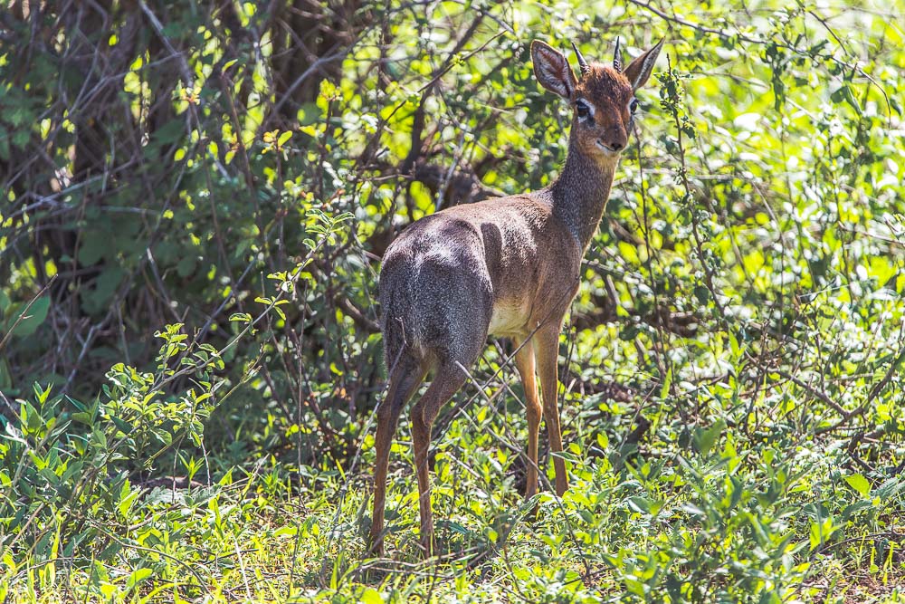 Nach einer langen Rückfahrt sehen wir, wieder im Busch, ein Dikdik, die kleinste und eine sehr scheue Gazellenart.