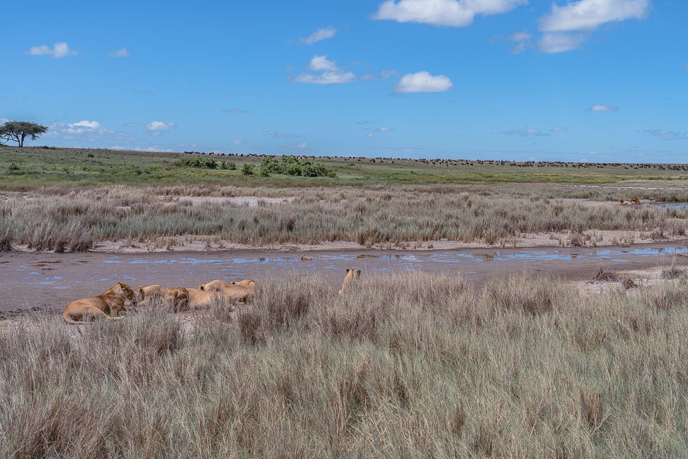 Irgendwie würden die Gnu´s ja gerne trinken kommen, aber keines traut sich her.