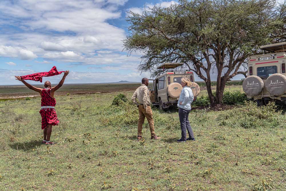 In einiger Entfernung warten Hyänen, die wollen offenbar die Placenta fressen. Nichts geht verloren in der Natur, sagt der Maasai - Guide, und er hat recht.