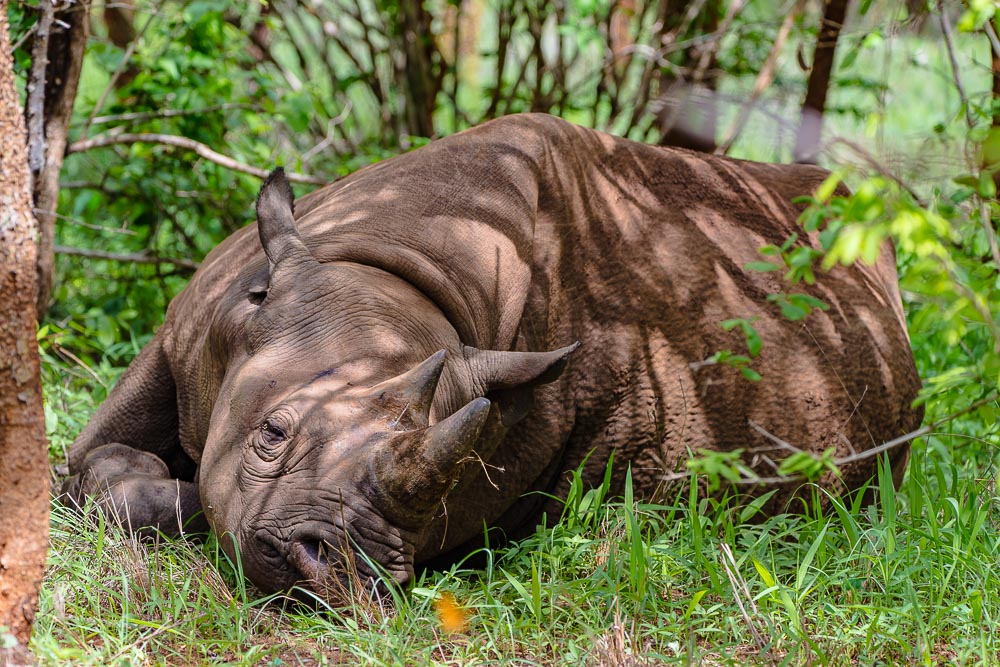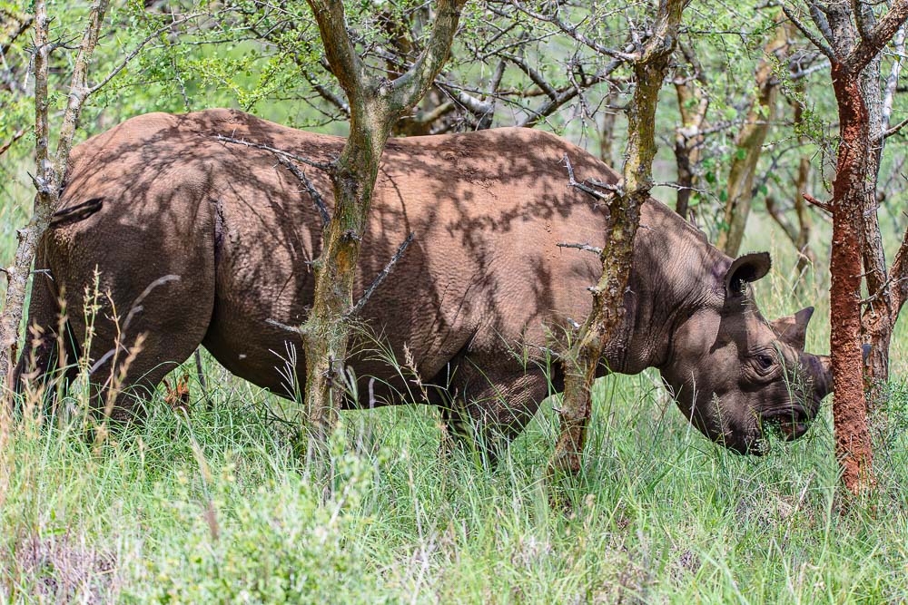 Der Fahrer fährt mit uns quer durch den Busch, kleine Bäume werden einfach "umgemäht" - das ist nicht unbedingt mein Zugang, aber du zahlst hier noch einmal 50 Dollar und erhältst dafür die Garantie, ein Nashorn zu sehen - aus der Nähe.