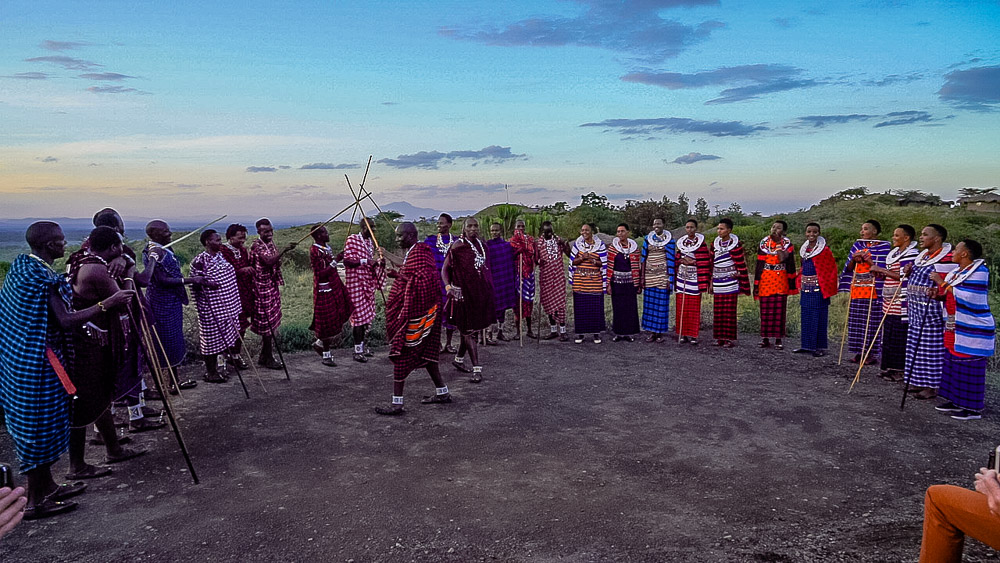 Abends ist das Wetter aber wieder klar und ich genieße ein letztes Mal in der Lodge den Maasai Tanz beim Sonnenuntergang.