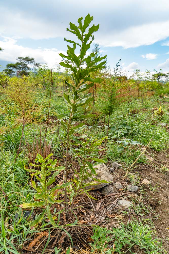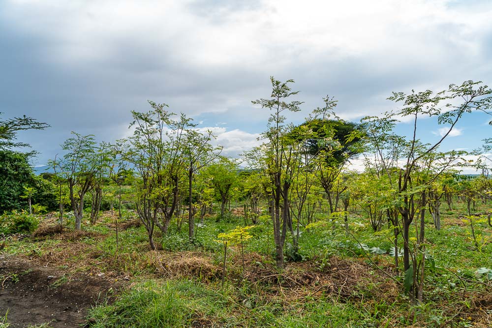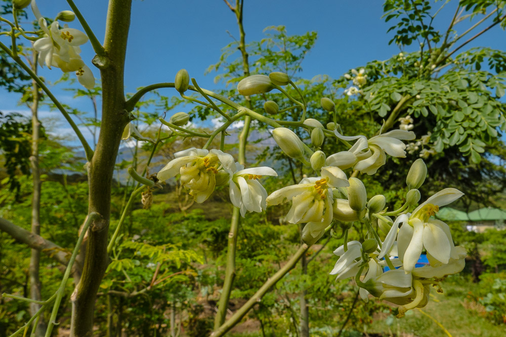 Moringabäume. Sie werden laufend beschnitten, um Blätter zu ernten, deswegen schauen sie etwas "zerrupft" aus.