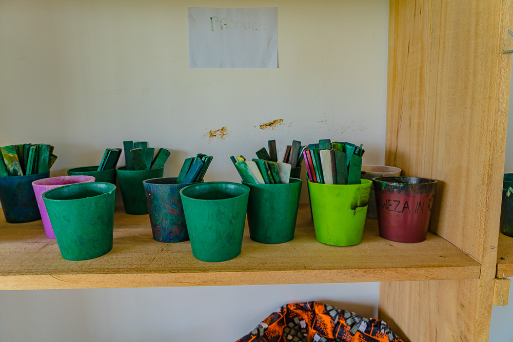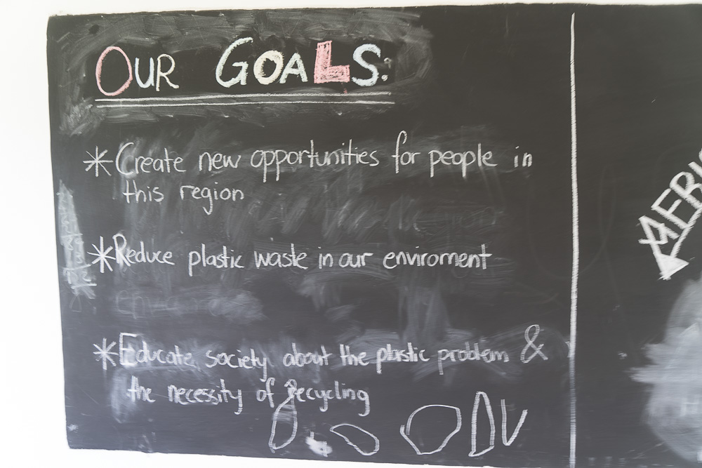 In einem weiteren Raum lernen die Schüler Plastikrecycling.