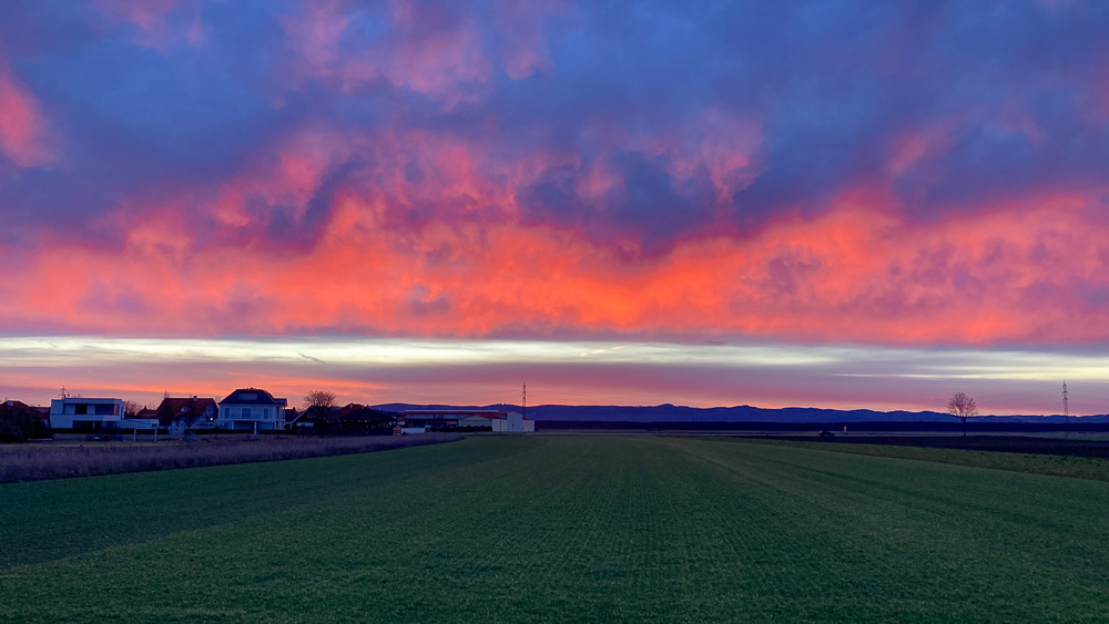 Bei der Ankunft bei Weikersdorf ein wunderbares Morgenrot, ...
