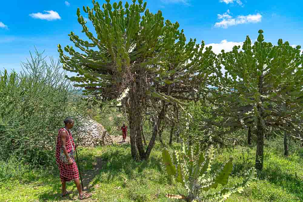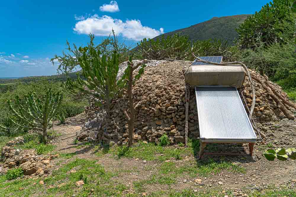 Da wir hier bei den heiligen Höhlen der Maasai sind, sind die Unterkünfte hier als künstliche "Höhlen" gebaut, am Berghang in einem lichten Euphorbienwald gelegen.