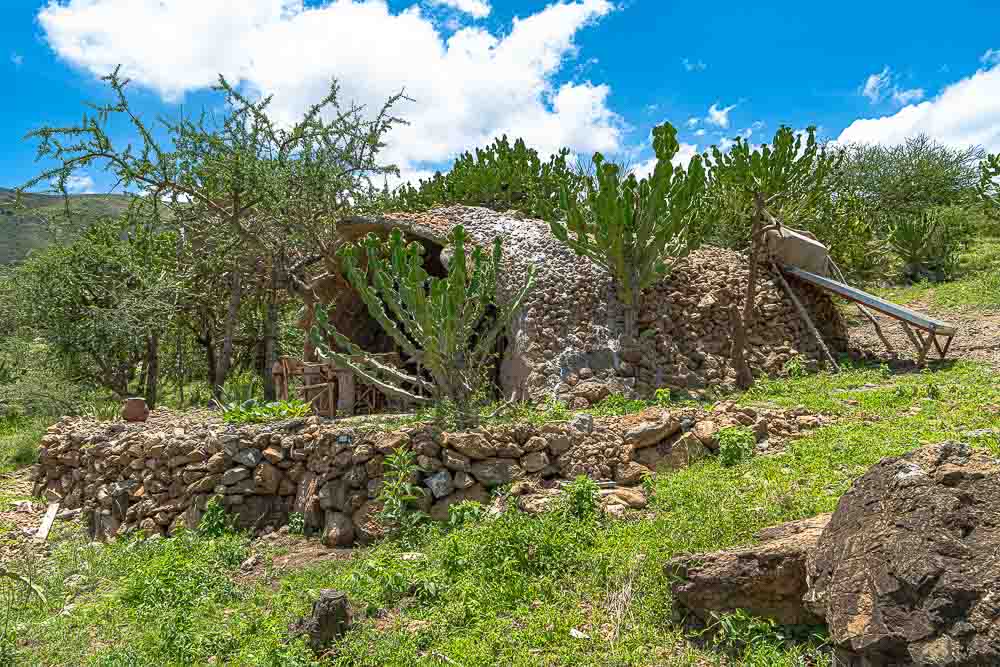 Vom Berg geht eine verzweigte Schlucht herunter, in der und an deren Seiten es immer wieder ursprünglich vulkanisch entstandene und wohl danach durch Wasser erweiterte Höhlen gibt.