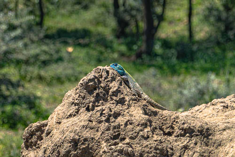 Ein Chamäleon sonnt sich auf einem Felsen außerhalb des Bereichs, wir wandern wieder zurück zum "Sacred site"