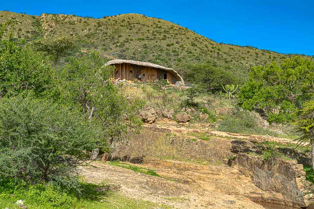 Das Küchengebäude, in dem über offenem Feuer gekocht wird. Mich wundert, dass dabei das Gebäude nicht abbrennt. Wir dürfen auch ein Wohngebäude besichtigen, das winzig ist und nur aus einem kleinen Vorraum und einem Schlafraum besteht, der fast völlig vom Bett eingenommen wird. Davon gibt es natürlich keine Fotos.