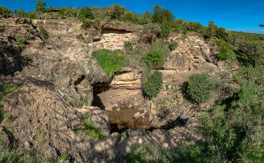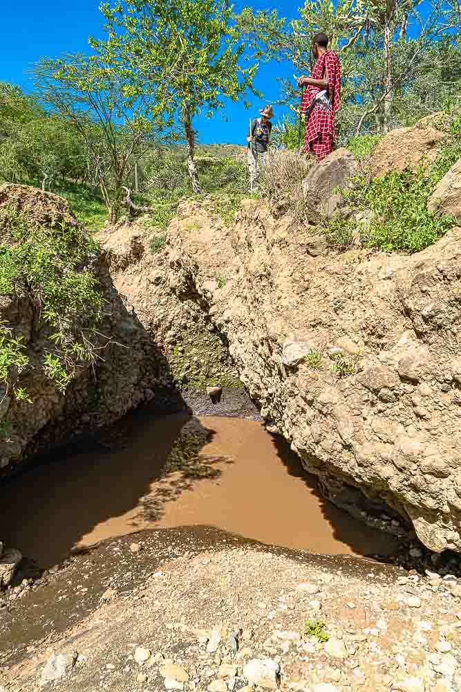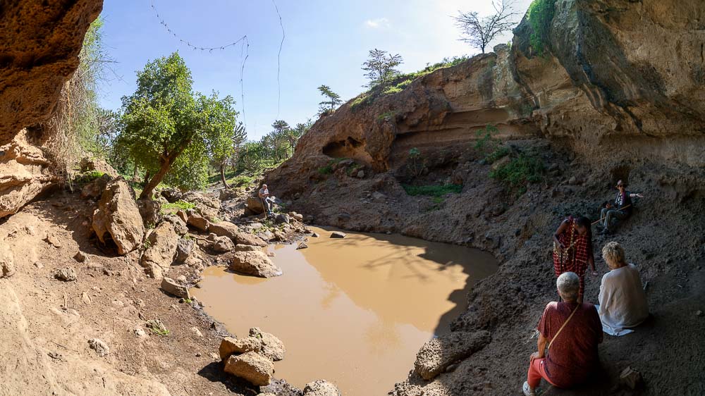 Der Tümpel ist mehrere Meter tief, sagt unser Maasaiführer - aufgrund der Ausspülung durch den Wasserfall.