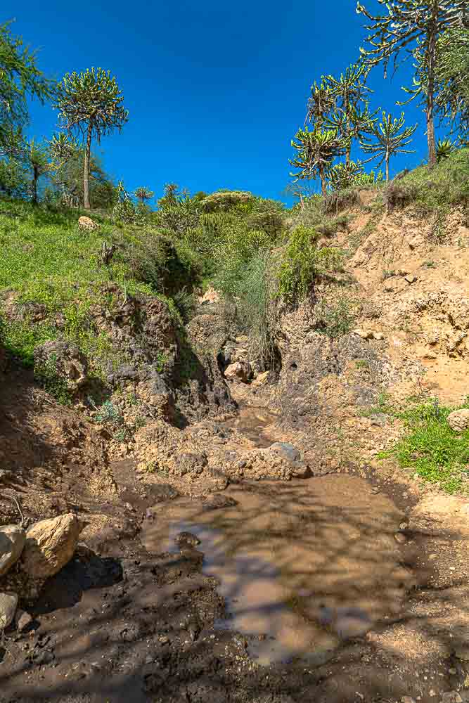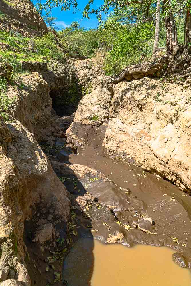 ... ist wird Regenzeit von einem reißenden Wildbach angefüllt, mit einem Wasserfall an dieser Stelle.