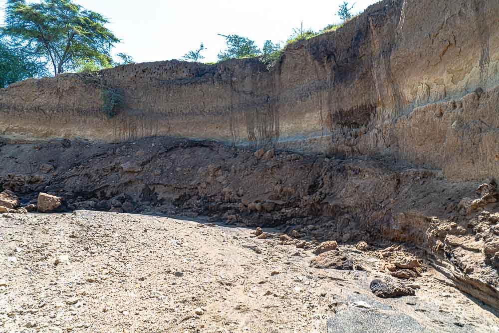 Weißliche Salzausblühungen am Felsen werden von den Maasai gesammelt.