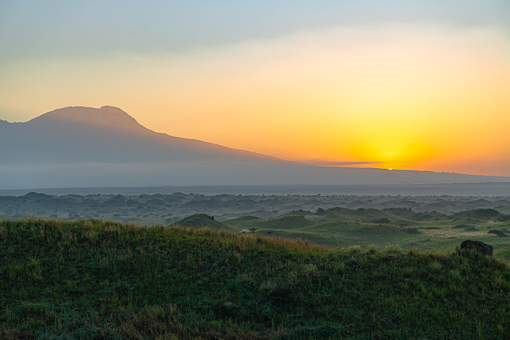 Sonnenaufgang hinter dem Kilimandscharo - heute wieder anders als die letzten Male.
