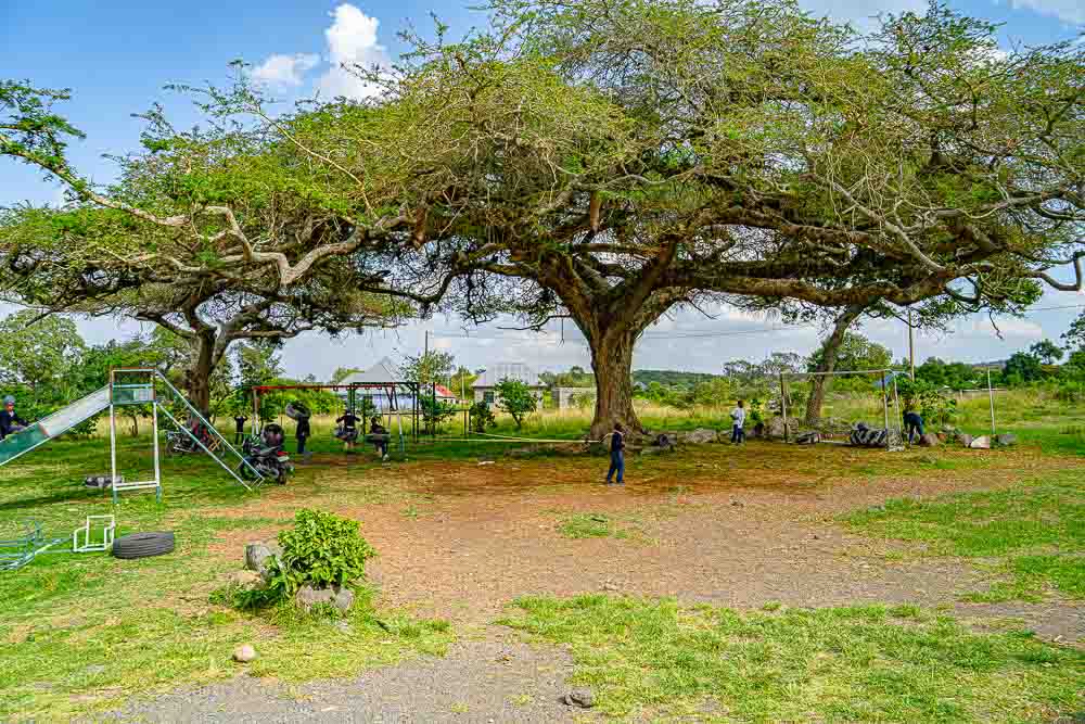 Danach Besuch der "Kindervilla", dem Waisenhaus von Africa Amini Alama, hier der Spielplatz im Garten. Da das Haus bewohnt ist und Kinder da sind, mache ich keine Fotos.